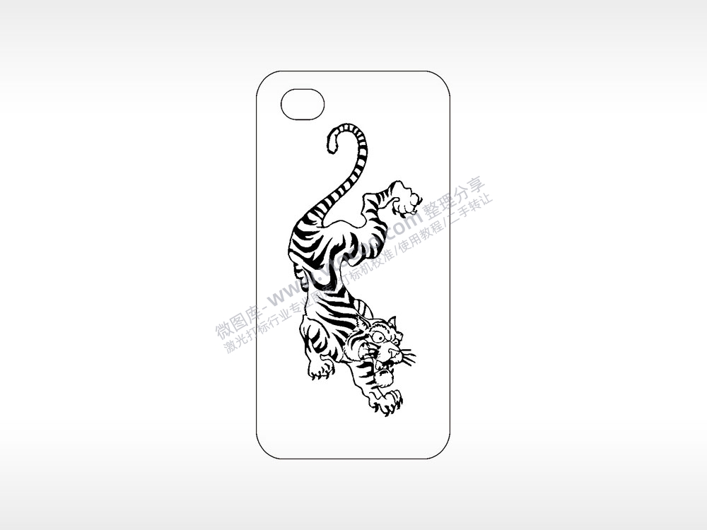 老虎动物卡通手机壳图案AI8.0格式激光打标文件通用矢量图