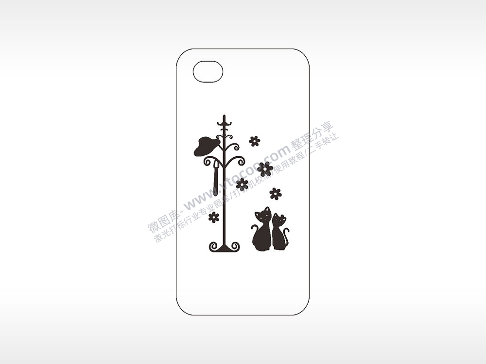 花朵猫咪路灯卡通手机壳AI8.0格式激光打标文件通用矢量图
