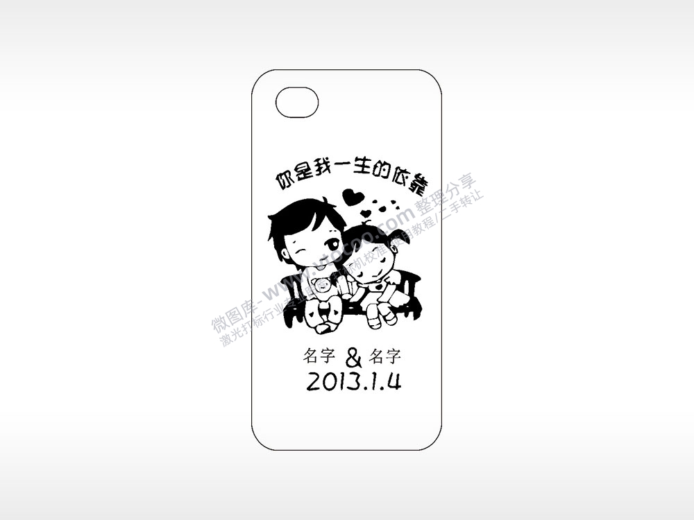 你是我一生的依靠情侣手机壳AI8.0格式激光打标文件通用矢量图