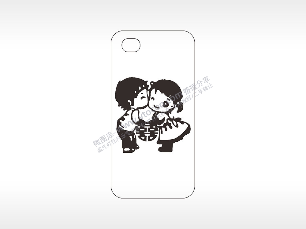 喜情侣爱情卡通手机壳AI8.0格式激光打标文件通用矢量图