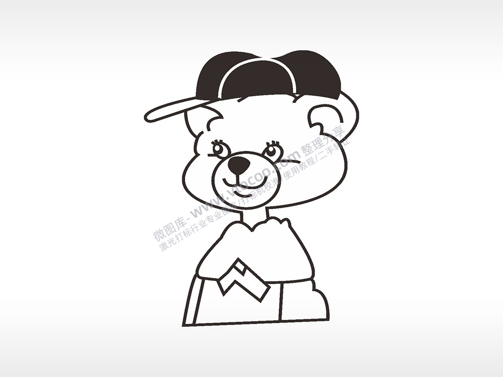 小熊帽子卡通人物AI8.0格式激光打标文件通用矢量图