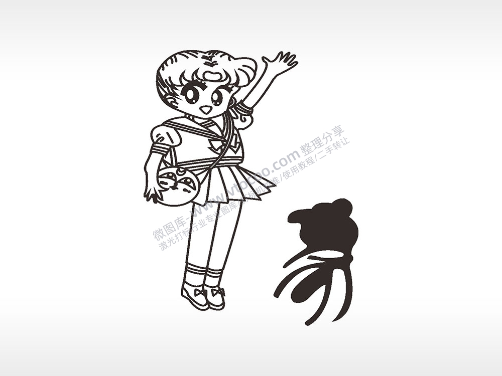 美少女战士卡通人物AI8.0格式激光打标文件通用矢量图