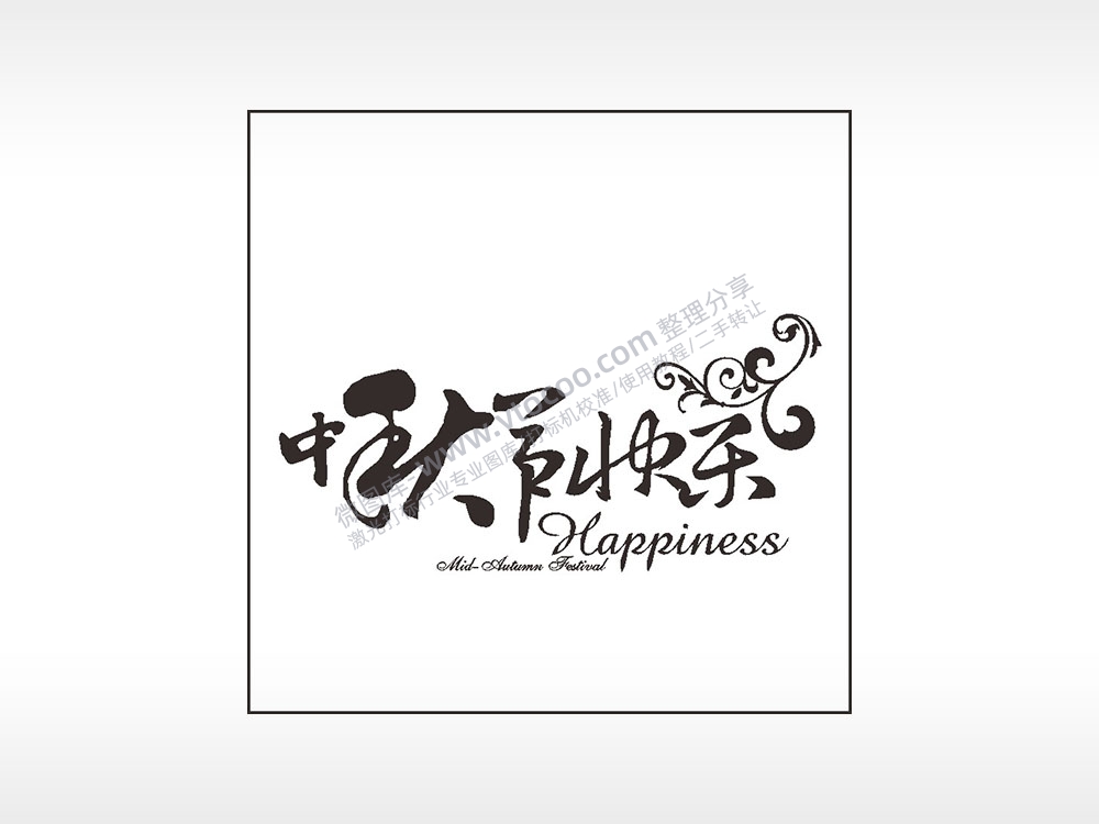 中秋节快乐Happiness节日AI8.0格式激光打标文件通用矢量图