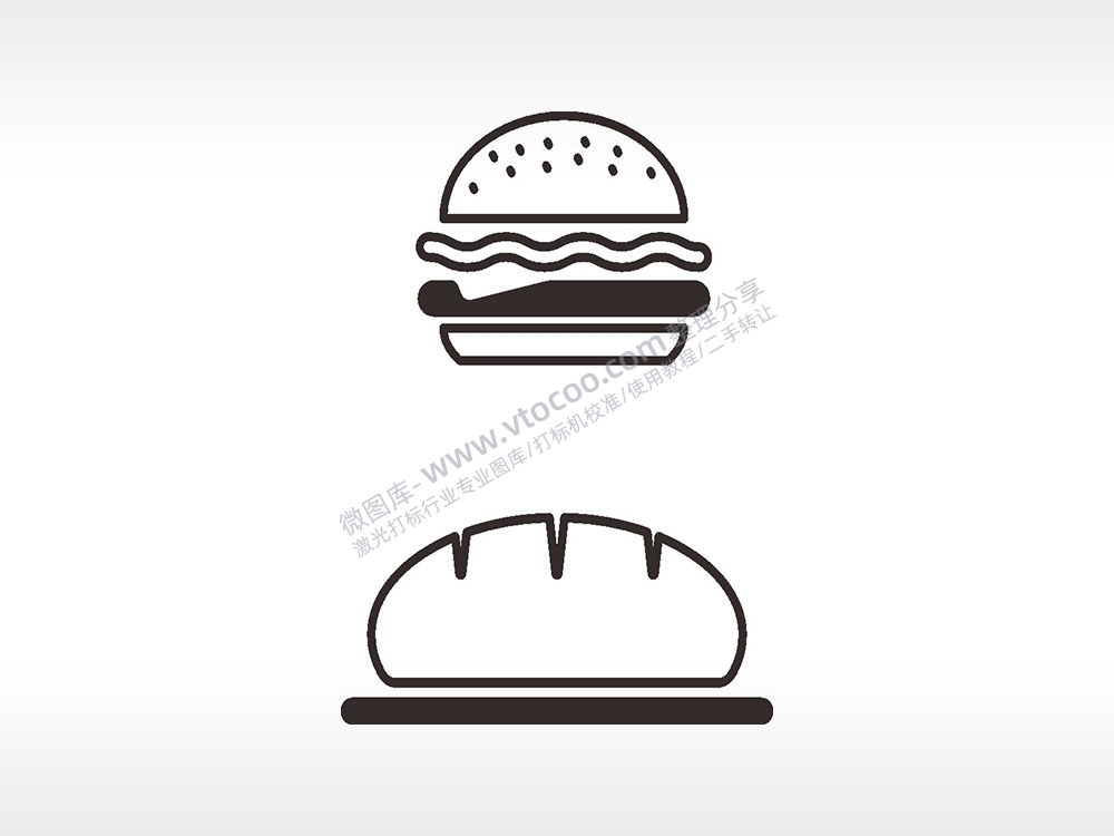 面包汉堡烘焙卡通厨具食物AI8.0格式激光打标文件通用矢量图