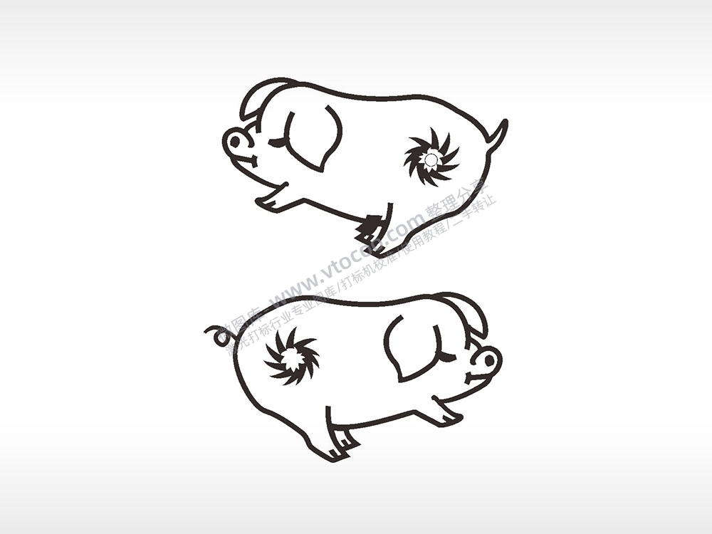 两只猪卡通猪AI8.0格式激光打标文件通用矢量图