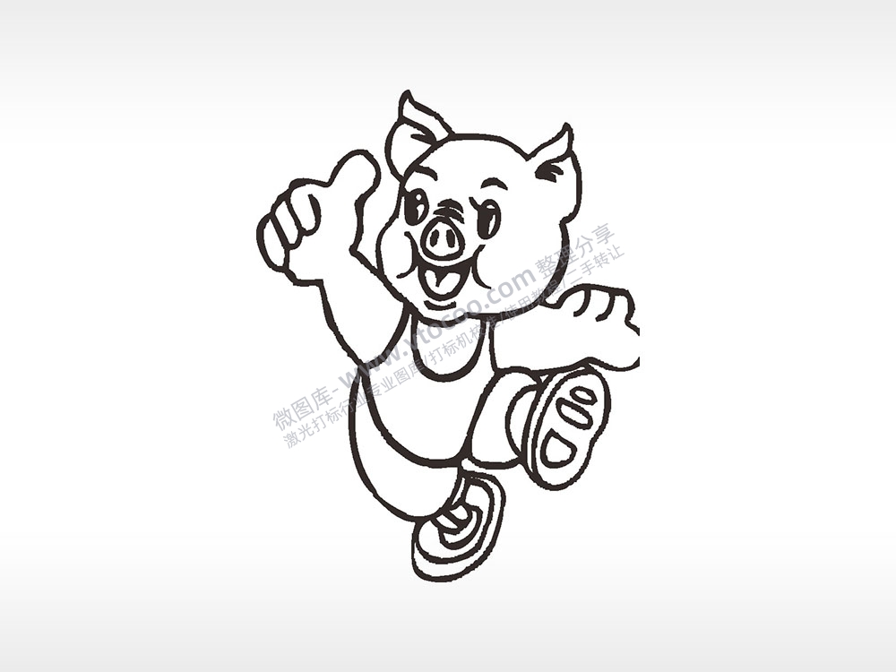猪大拇指卡通猪AI8.0格式激光打标文件通用矢量图