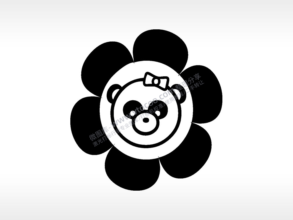 卡通熊猫头像花花AI8.0格式激光打标文件通用矢量图