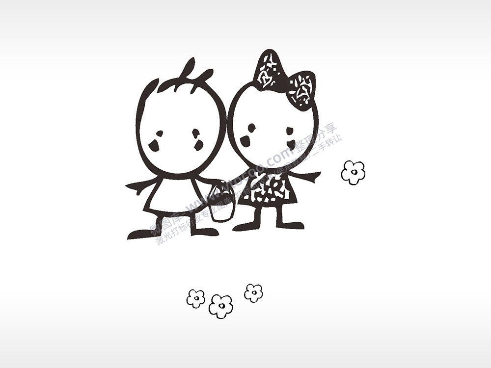 情侣赶海卡通人物爱情类AI8.0格式激光打标文件通用矢量图
