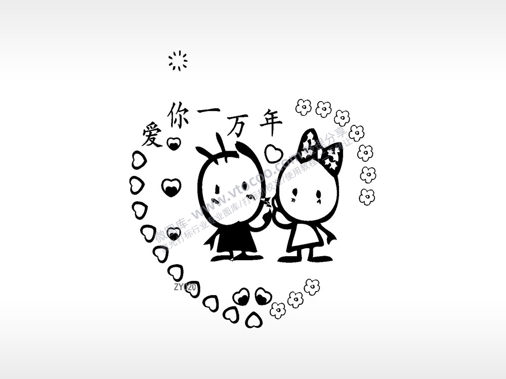 爱你一万年花花爱心卡通人物爱情类AI8.0格式激光打标文件通用矢量图