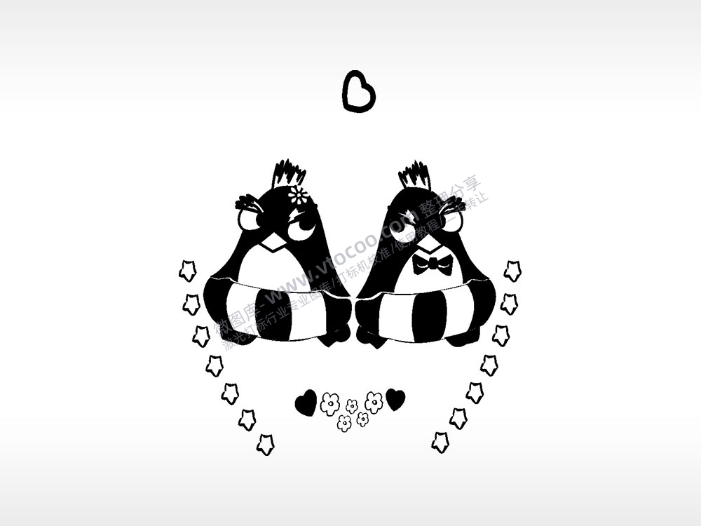 企鹅爱心星星卡通人物爱情类AI8.0格式激光打标文件通用矢量图