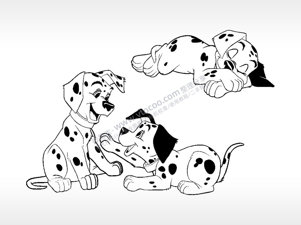 斑点狗玩耍卡通狗类AI8.0格式激光打标文件通用矢量图