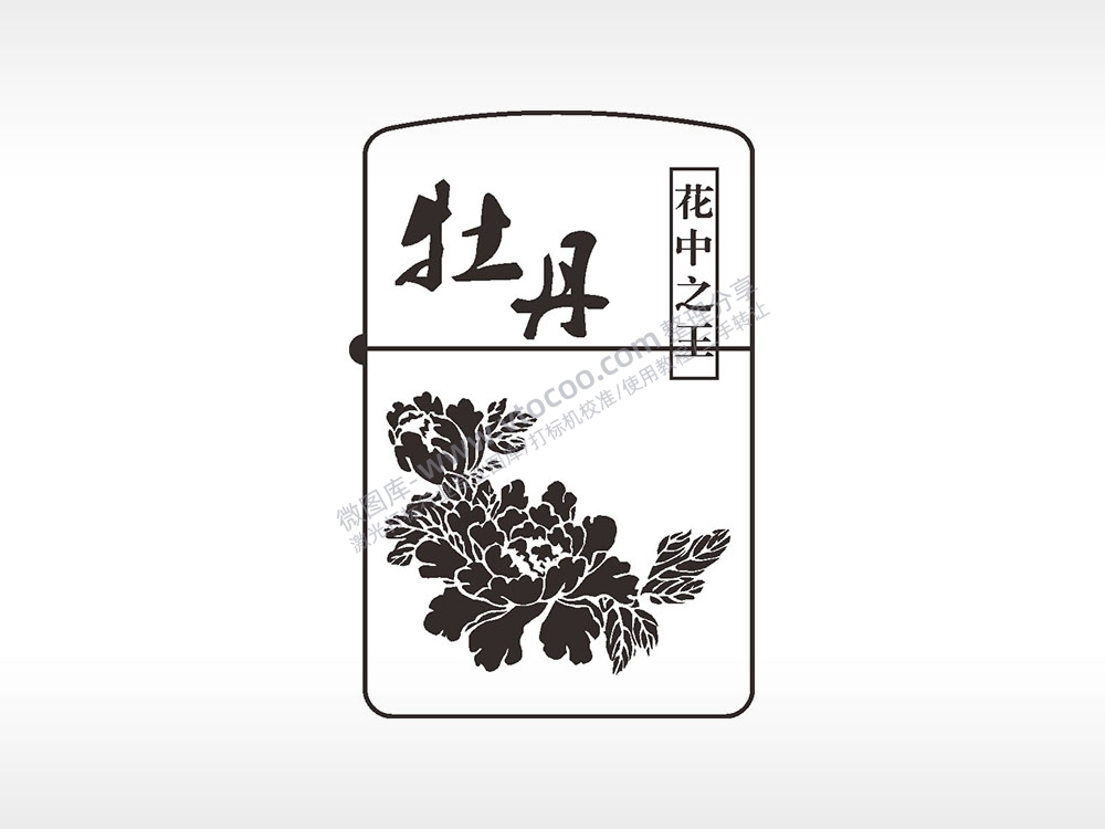 牡丹花中之王植物煤油打火机AI8.0格式激光打标文件通用矢量图