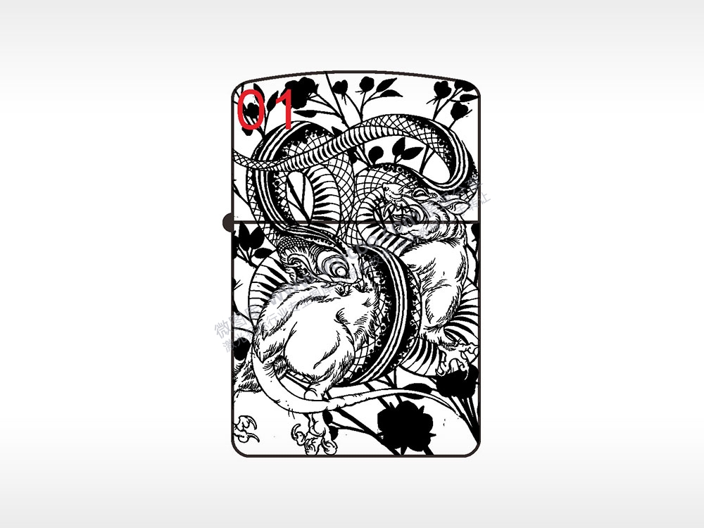 蛇吞老鼠纯铜煤油打火机AI8.0格式激光打标文件通用矢量图