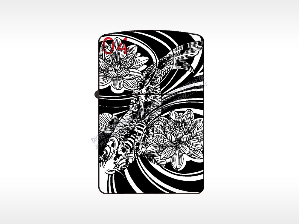 池塘鱼莲花纯铜煤油打火机AI8.0格式激光打标文件通用矢量图