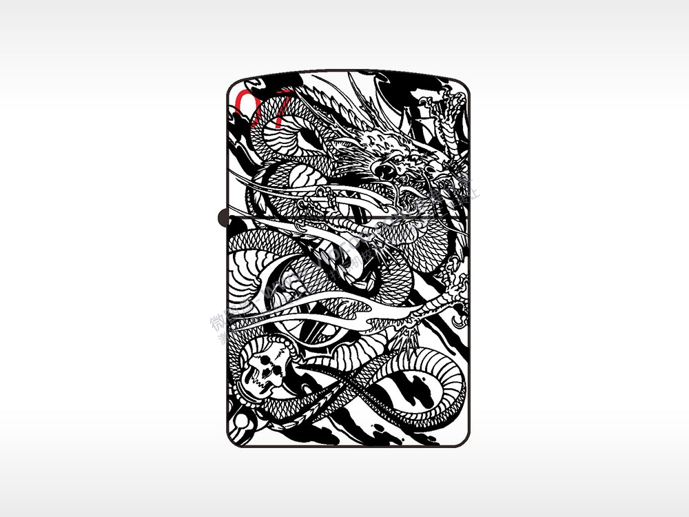 蛟龙之争骷髅纯铜煤油打火机AI8.0格式激光打标文件通用矢量图
