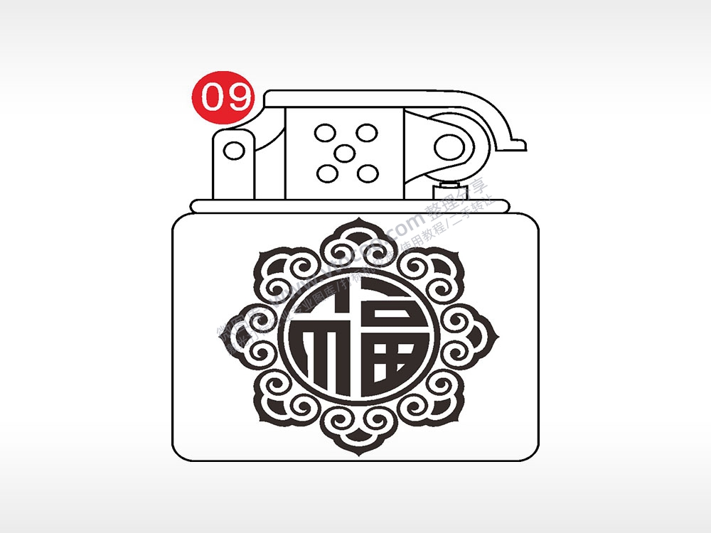 福浮云边框老九门打火机AI8.0格式激光打标文件通用矢量图