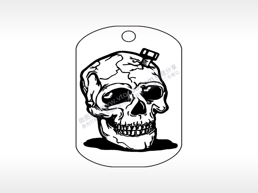 骷髅头螺丝钛钢军牌项链AI8.0格式激光打标文件通用矢量图