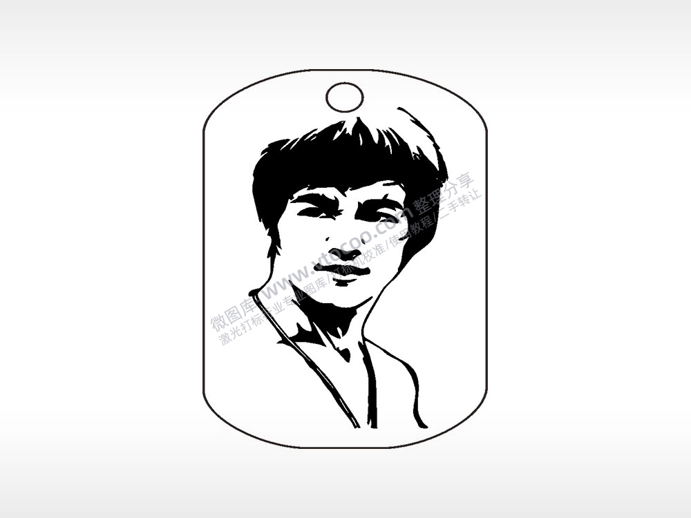 李小龙神话武术宗师钛钢军牌项链AI8.0格式激光打标文件通用矢量图