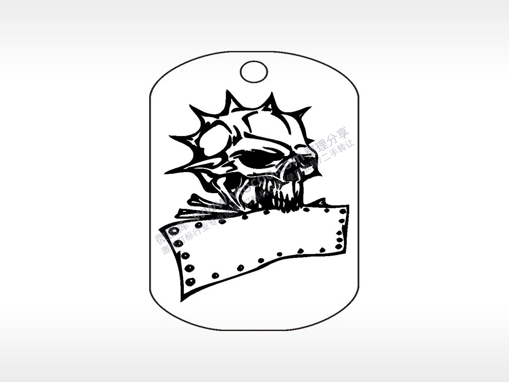 骷髅头白条钛钢军牌项链AI8.0格式激光打标文件通用矢量图