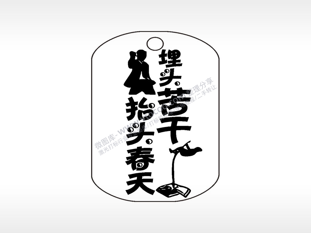 埋头苦干抬头春天钛钢军牌项链AI8.0格式激光打标文件通用矢量图