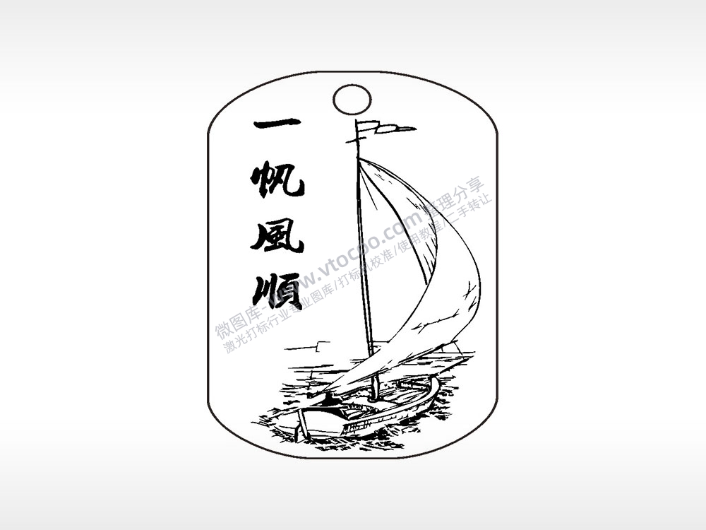 一帆风顺帆船钛钢军牌项链AI8.0格式激光打标文件通用矢量图