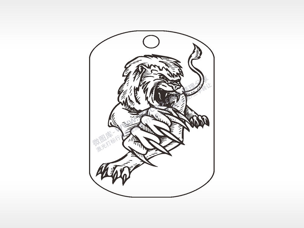 狮子手绘钛钢军牌项链AI8.0格式激光打标文件通用矢量图