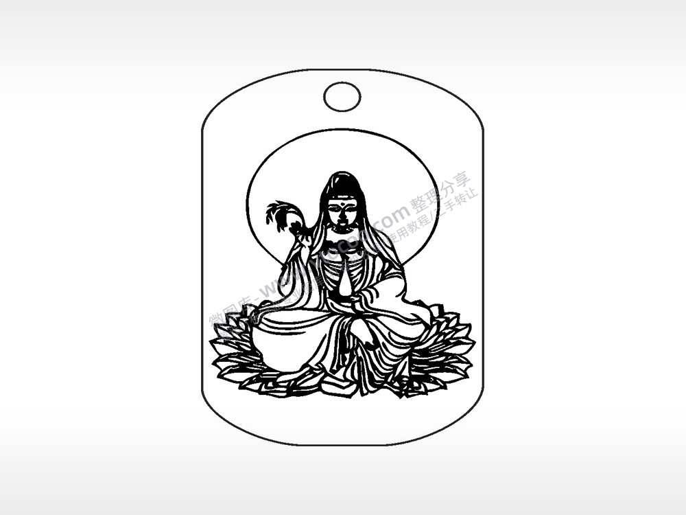 观音菩萨坐莲钛钢军牌项链AI8.0格式激光打标文件通用矢量图