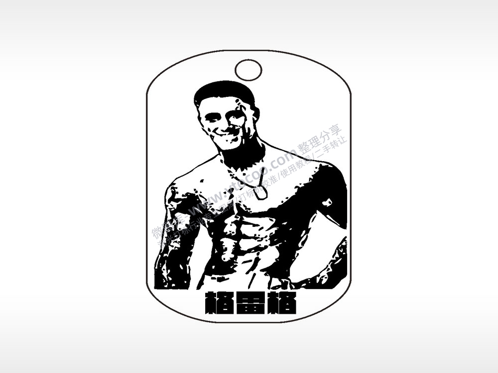 健身肌肉男钛钢军牌项链AI8.0格式激光打标文件通用矢量图