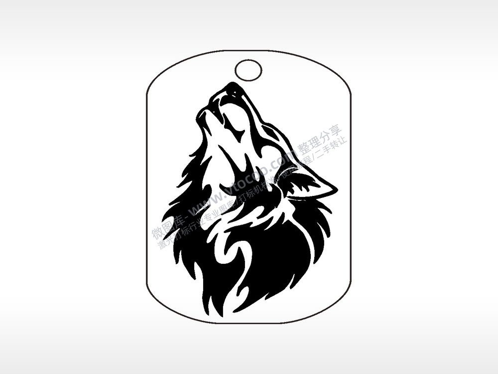 狼嚎动物钛钢军牌项链AI8.0格式激光打标文件通用矢量图