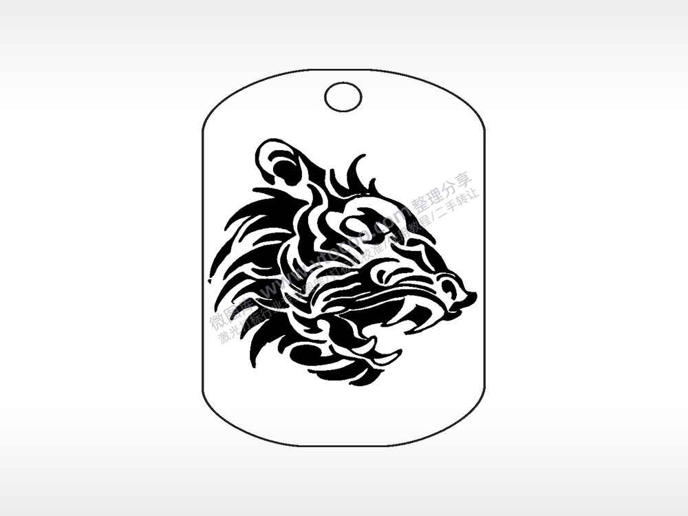 野猪獠牙钛钢军牌项链AI8.0格式激光打标文件通用矢量图