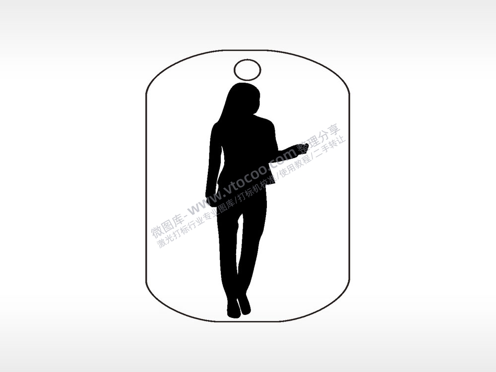 美女背影剪影钛钢军牌项链AI8.0格式激光打标文件通用矢量图