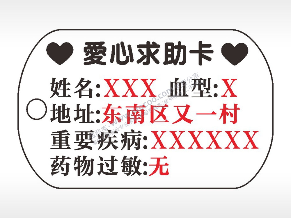 爱心求助卡钛钢军牌项链AI8.0格式激光打标文件通用矢量图