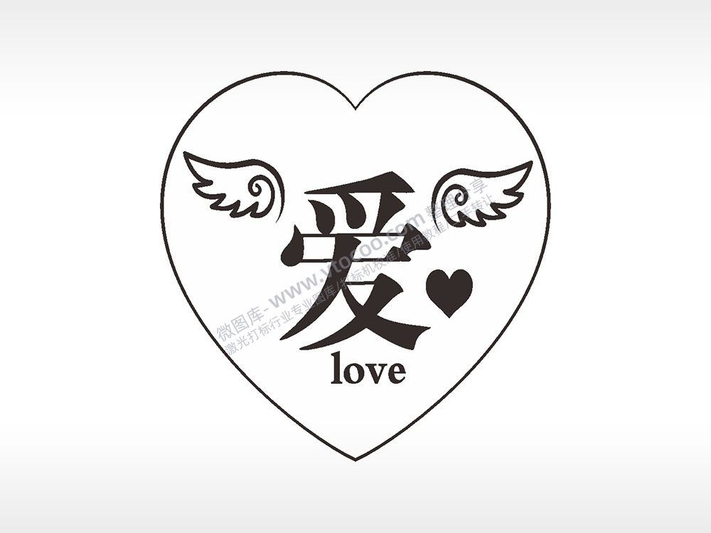 爱心love翅膀心型项链模板AI8.0格式激光打标文件通用矢量图