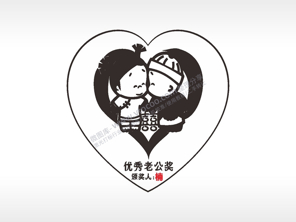 小破孩优秀老公奖心型项链模板AI8.0格式激光打标文件通用矢量图
