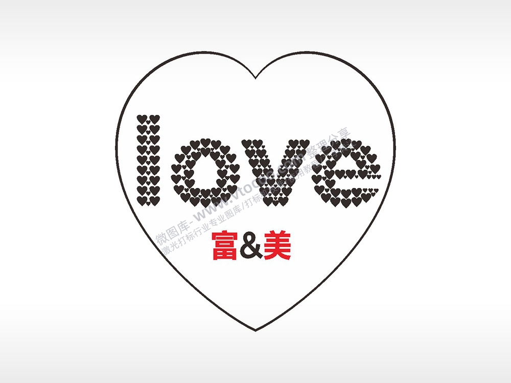 爱心组成love心型项链模板AI8.0格式激光打标文件通用矢量图