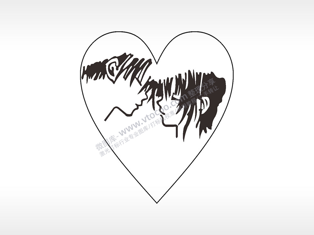 情侣男女心型项链模板AI8.0格式激光打标文件通用矢量图