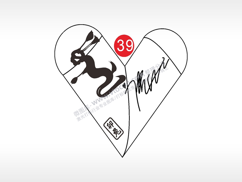 兔艺术字心形打火机AI8.0格式激光打标文件通用矢量图