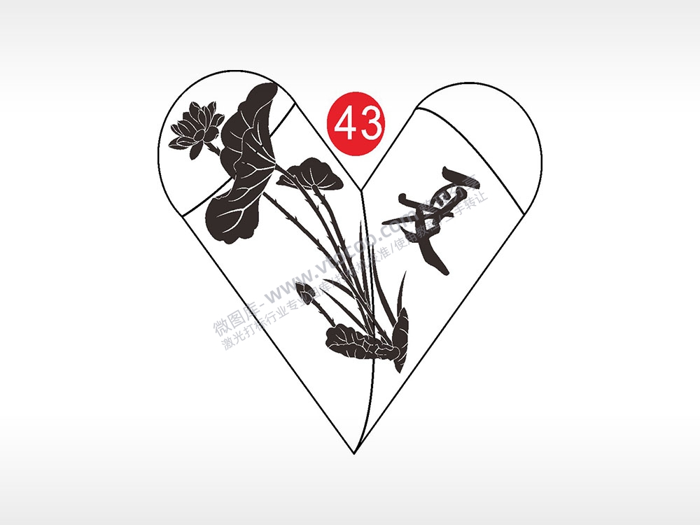 夏季节荷花莲花心形打火机AI8.0格式激光打标文件通用矢量图
