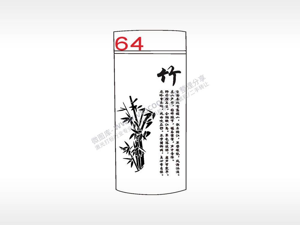 竹子古诗水杯模板AI8.0格式激光打标文件通用矢量图