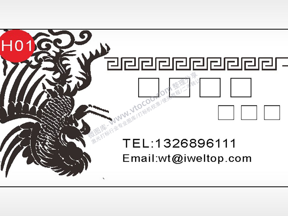 凤凰中国风名片横版AI8.0格式激光打标文件通用矢量图