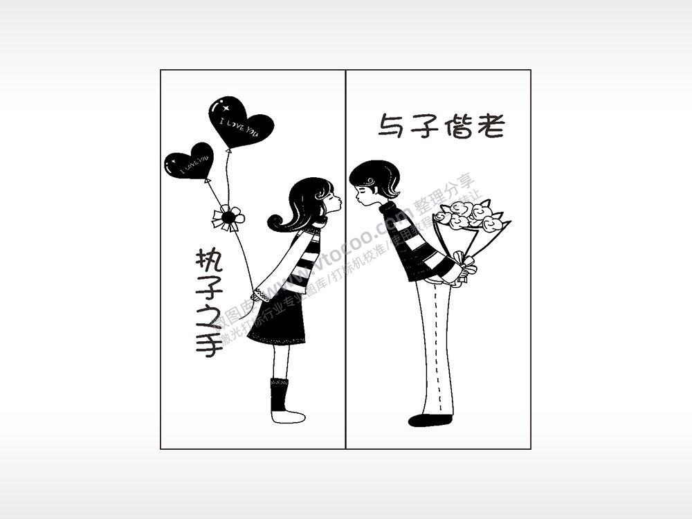 执子之手与子偕老情侣组合模板AI8.0格式激光打标文件通用矢量图