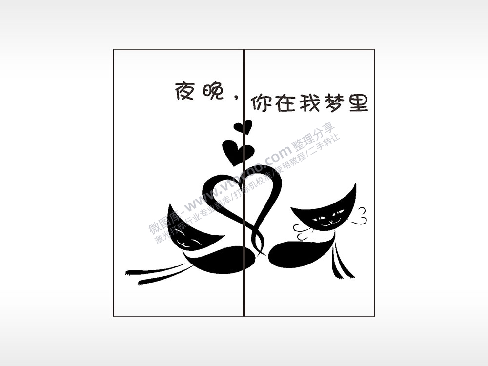 夜晚你在我梦里情侣组合模板AI8.0格式激光打标文件通用矢量图
