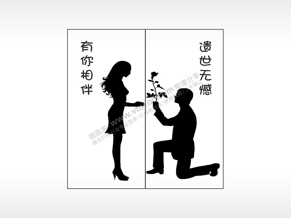 有你相伴遗世无憾情侣组合模板AI8.0格式激光打标文件通用矢量图