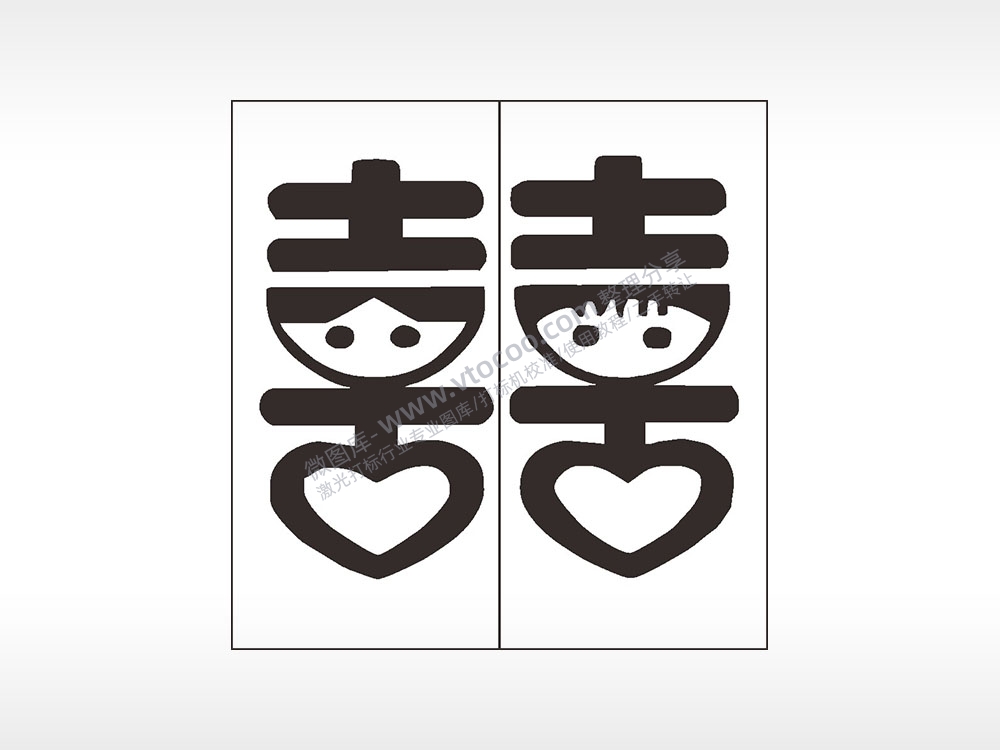 喜艺术字情侣组合模板AI8.0格式激光打标文件通用矢量图