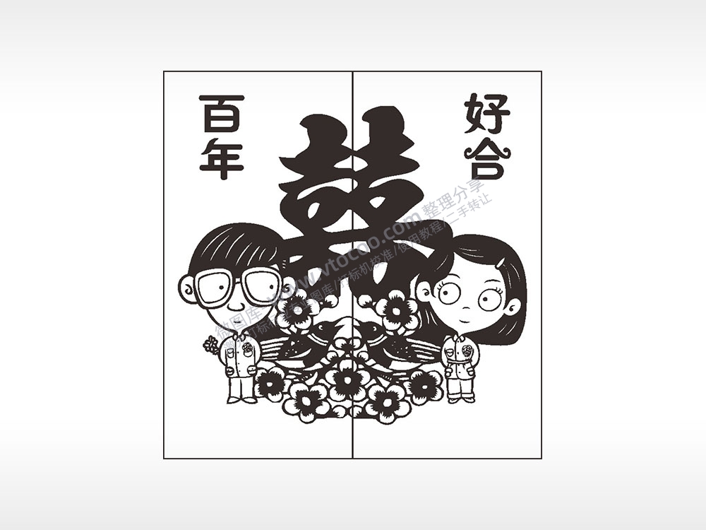 喜百年好合情侣组合模板AI8.0格式激光打标文件通用矢量图
