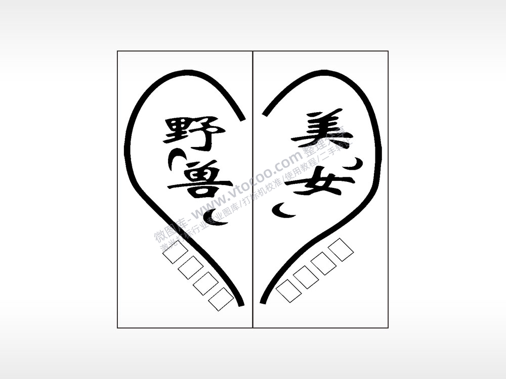 美女野兽情侣组合模板AI8.0格式激光打标文件通用矢量图