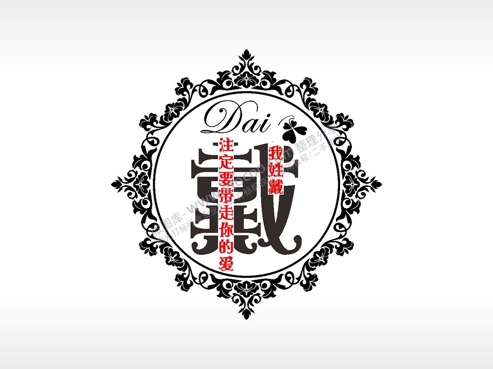 我姓戴注定要带走你的爱爱情姓氏AI8.0格式激光打标文件通用矢量图