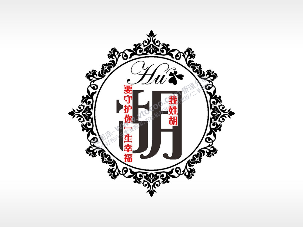 我姓胡要守护你一生幸福爱情姓氏AI8.0格式激光打标文件通用矢量图