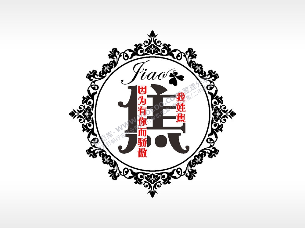 我姓焦因为有你而骄傲爱情姓氏AI8.0格式激光打标文件通用矢量图