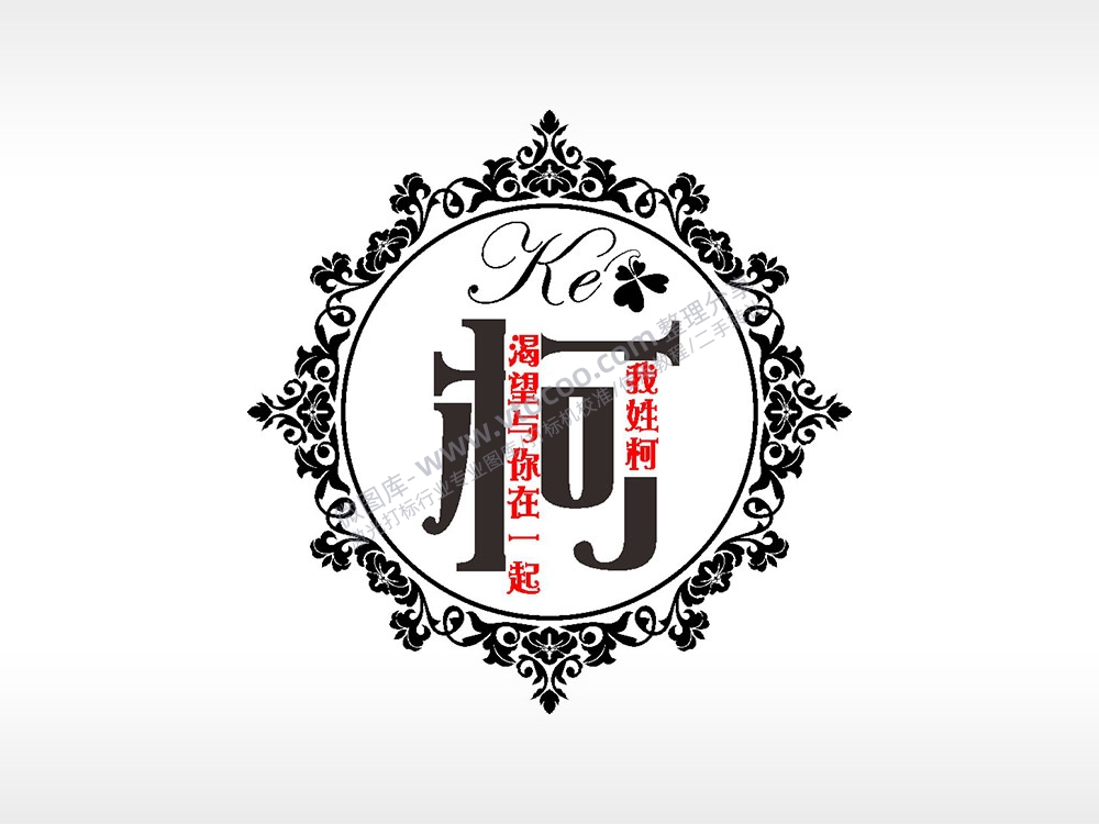 我姓柯渴望与你在一起爱情姓氏AI8.0格式激光打标文件通用矢量图
